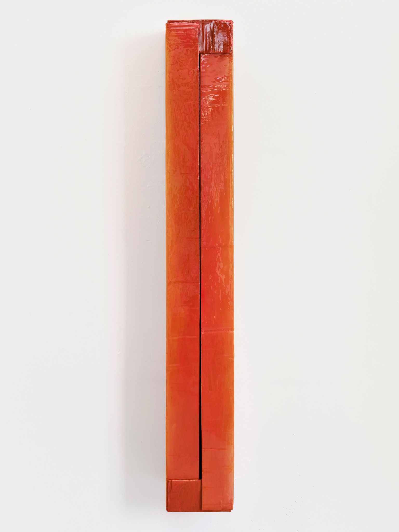 Machteld Rullens, Red Desert Pillar, 2024, Oil, acrylic, pigment, and resin on cardboard, 66.5 x 9 x 11 inches