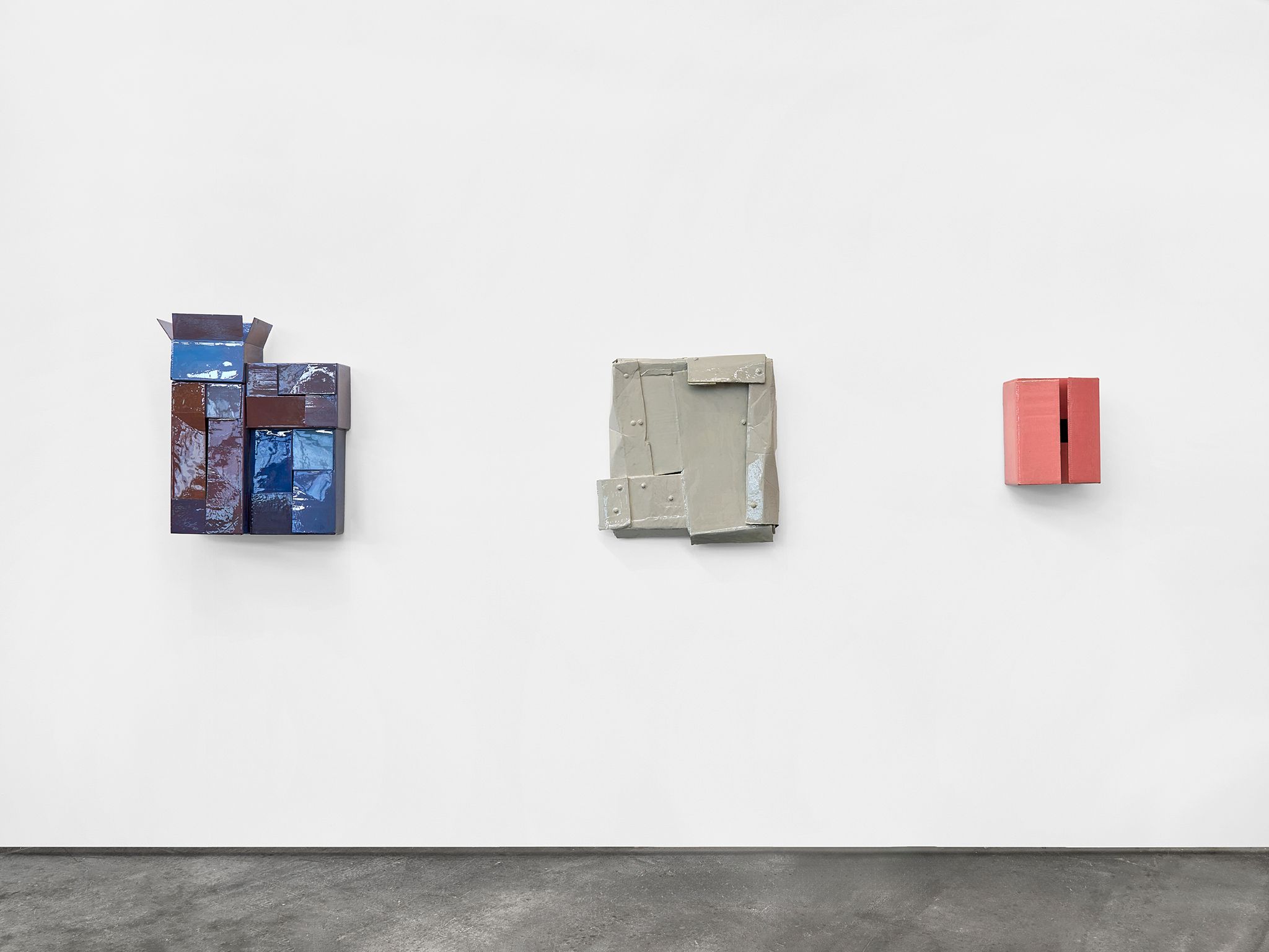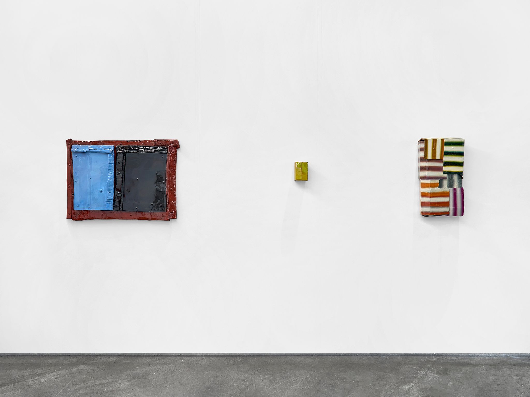 Machteld Rullens, Absorption Compilation (Blue, Brown), 2024, Oil, acrylic, pigment, and resin on cardboard, 29.5 x 25.5 x 9 inches