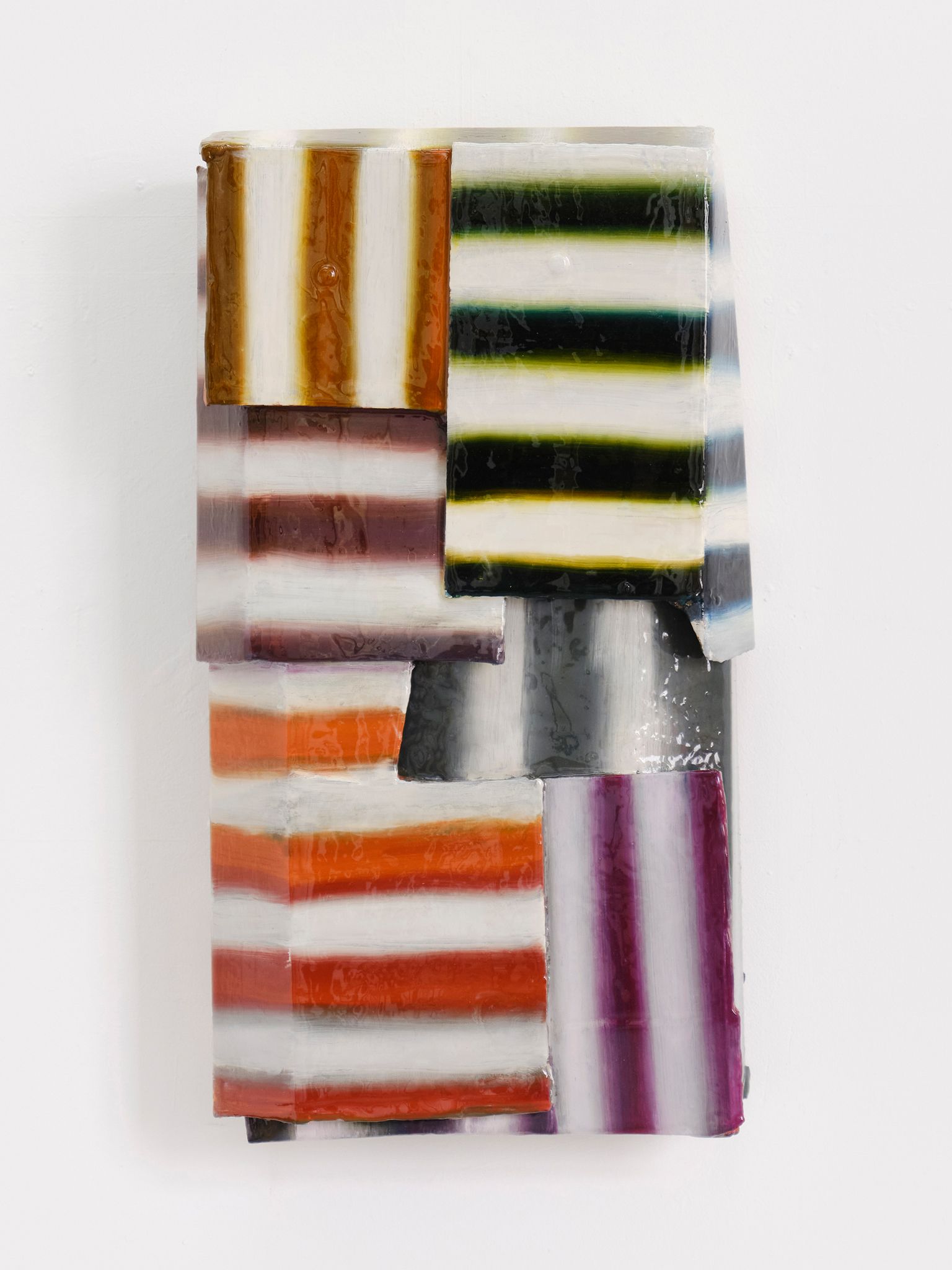Machteld Rullens, Marni, 2024, Oil, acrylic, pigment, resin, and bolts on cardboard, 25.5 x 14.25 x 6.25 inches