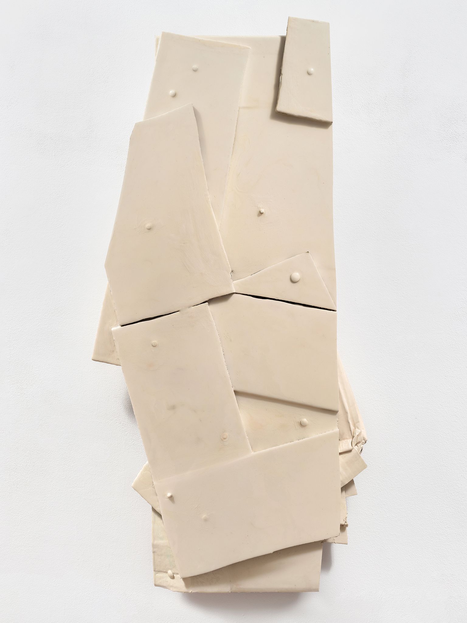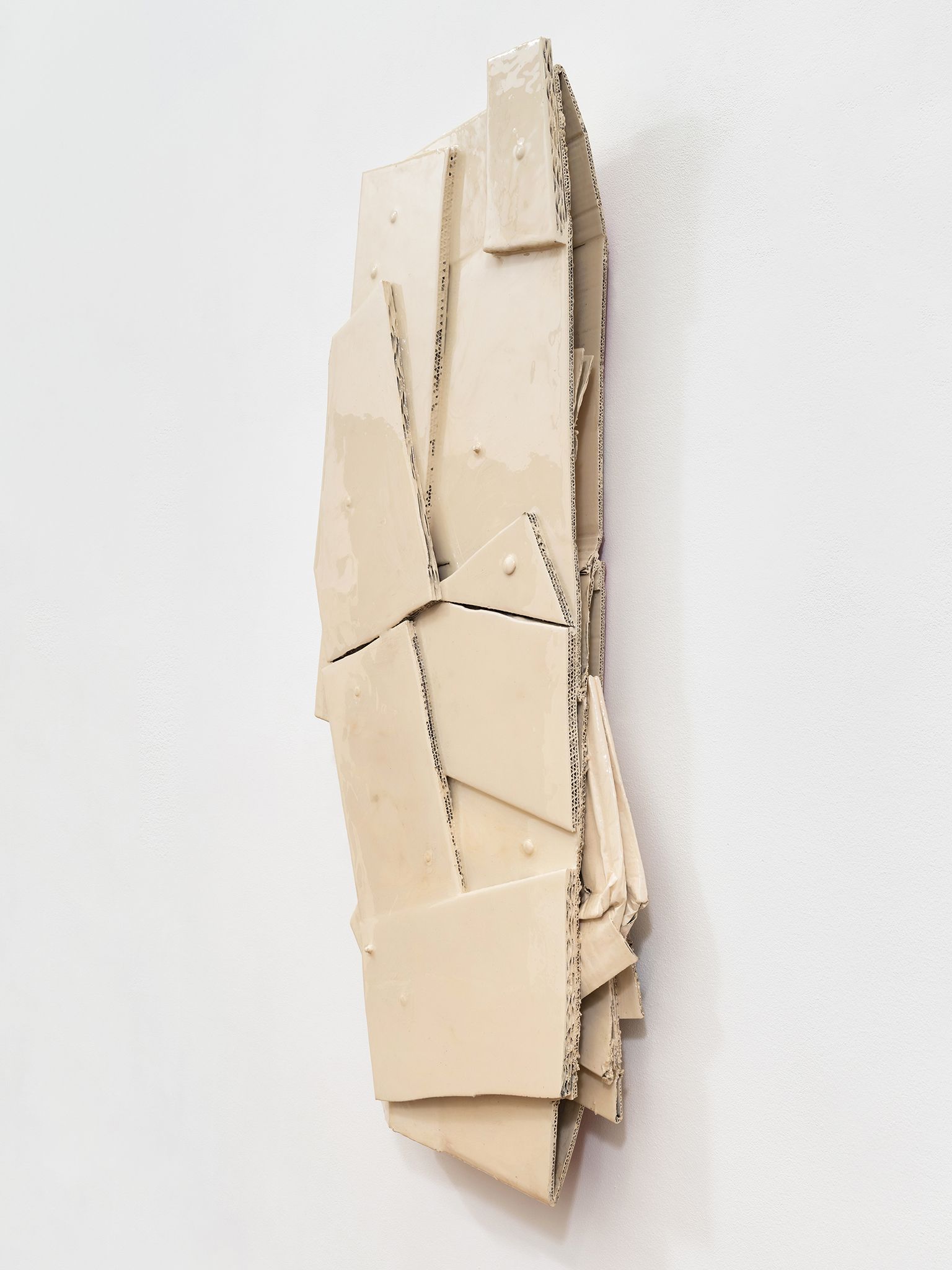 Machteld Rullens, Dolphin Créme, 2023, Oil, acrylic, pigment, resin, and bolts on cardboard, 49.5 x 24.5 x 4 inches