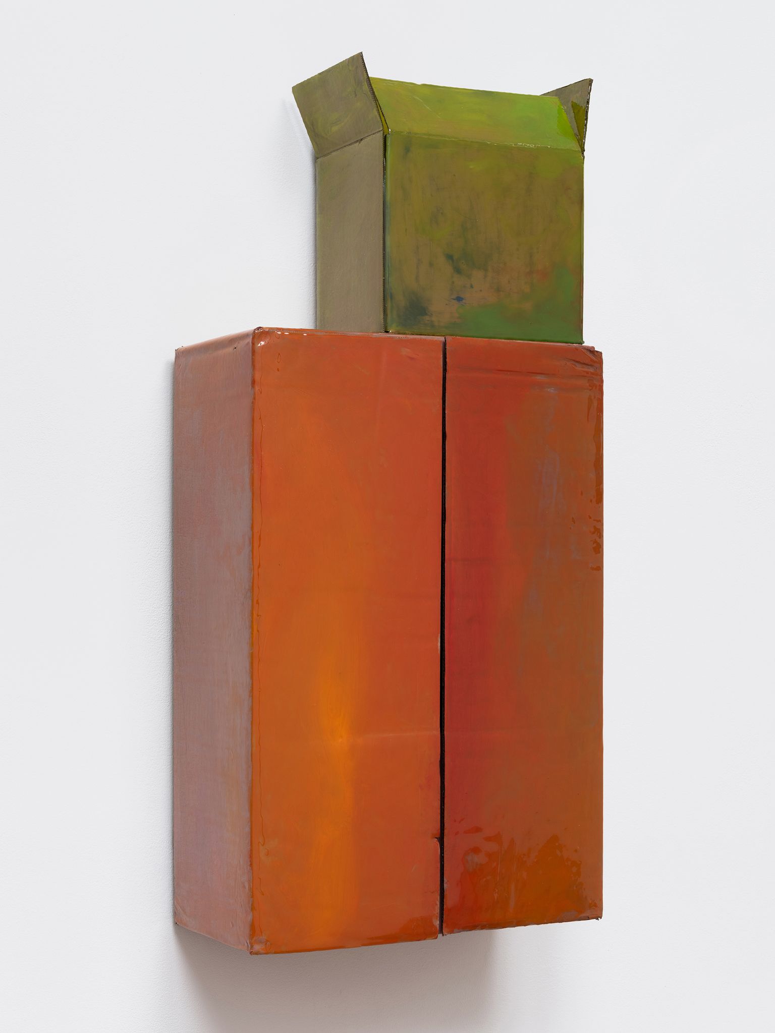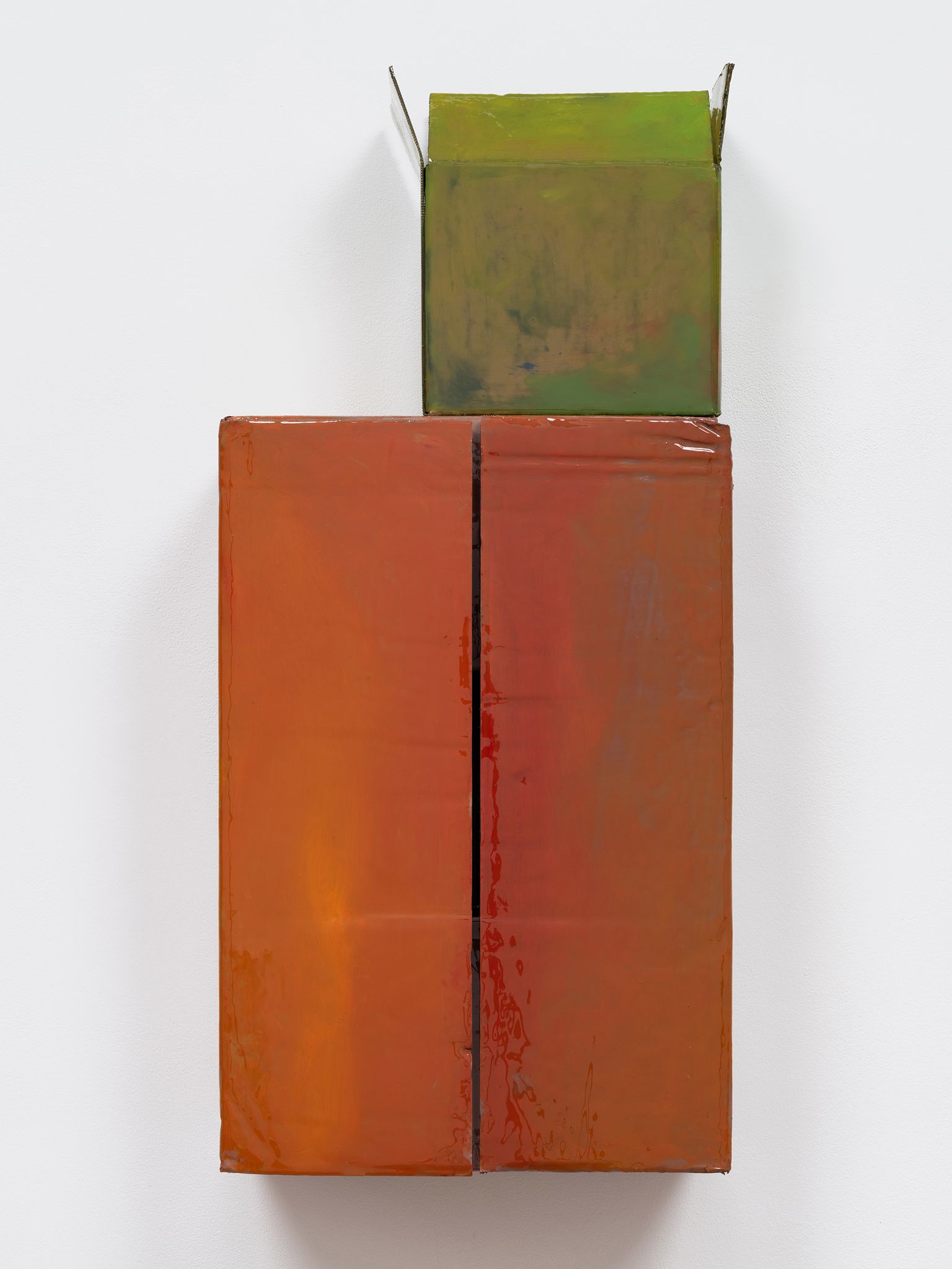 Machteld Rullens, Sunrise Box, 2023, Oil, acrylic, pigment, and resin on cardboard, 34.5 x 16 x 7.75 inches
