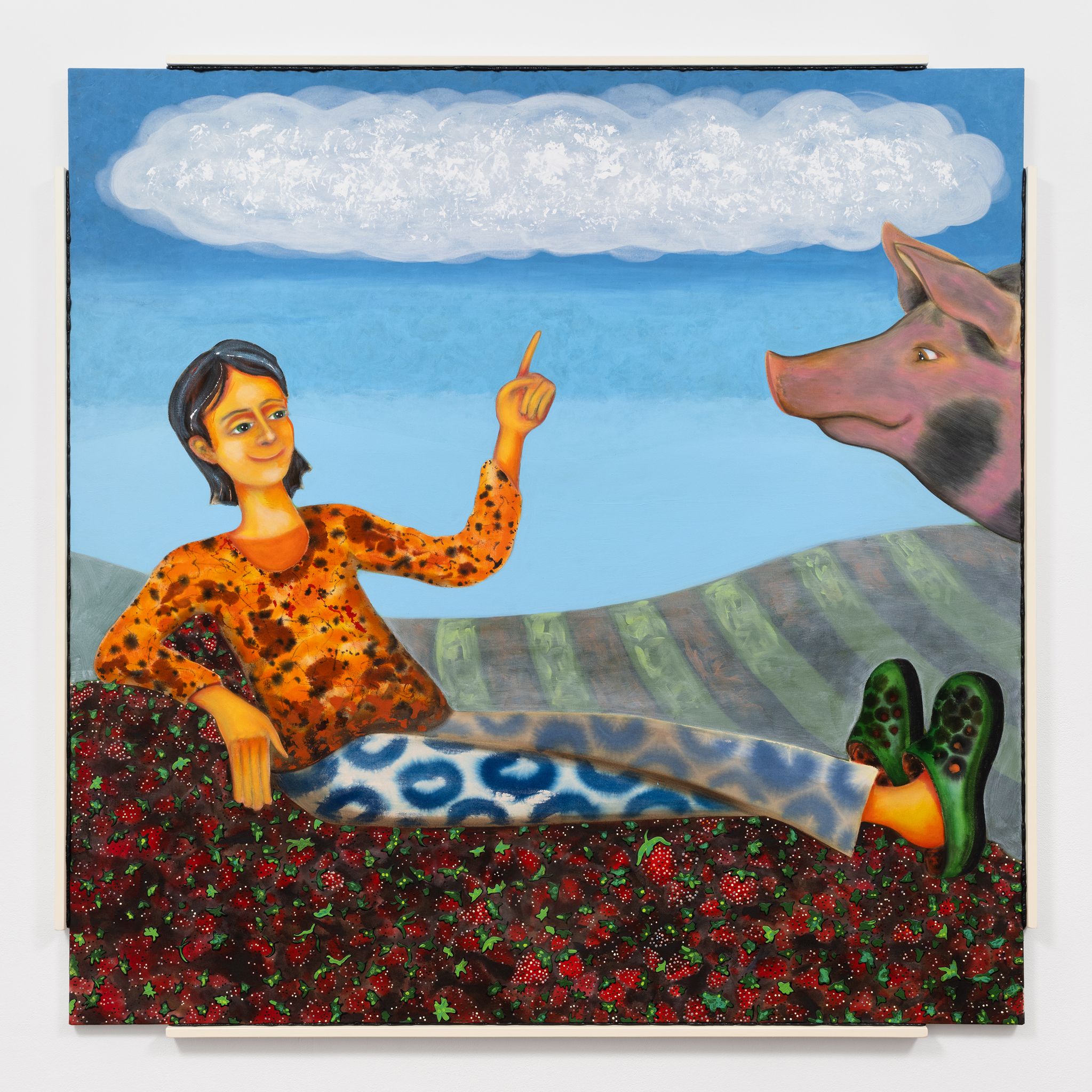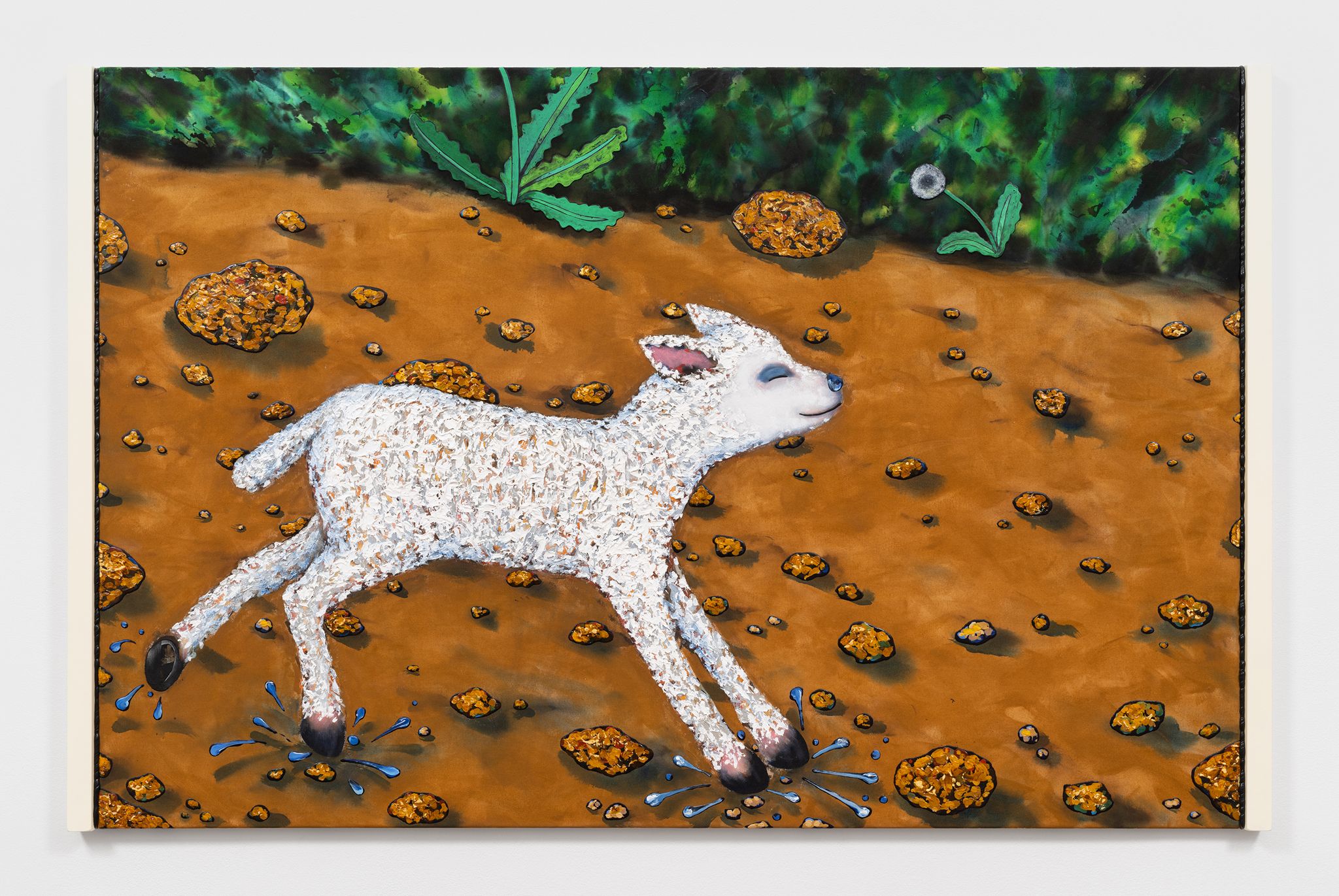 Magnus Andersen, Lamb's Lesson, 2022, Acrylic and oil on canvas with artist’s frame, 39.5 x 62 inches