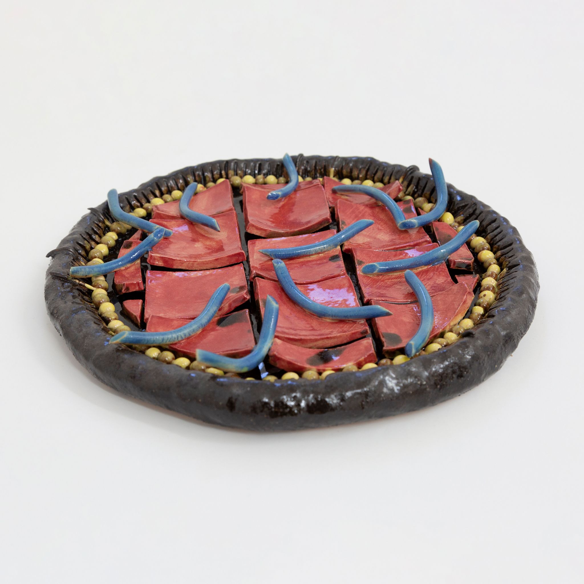 Yusuke Saito, OOPARTS (pizza) 21, 2023, Ceramic, 9.3 x 9.3 x 1.3 inches