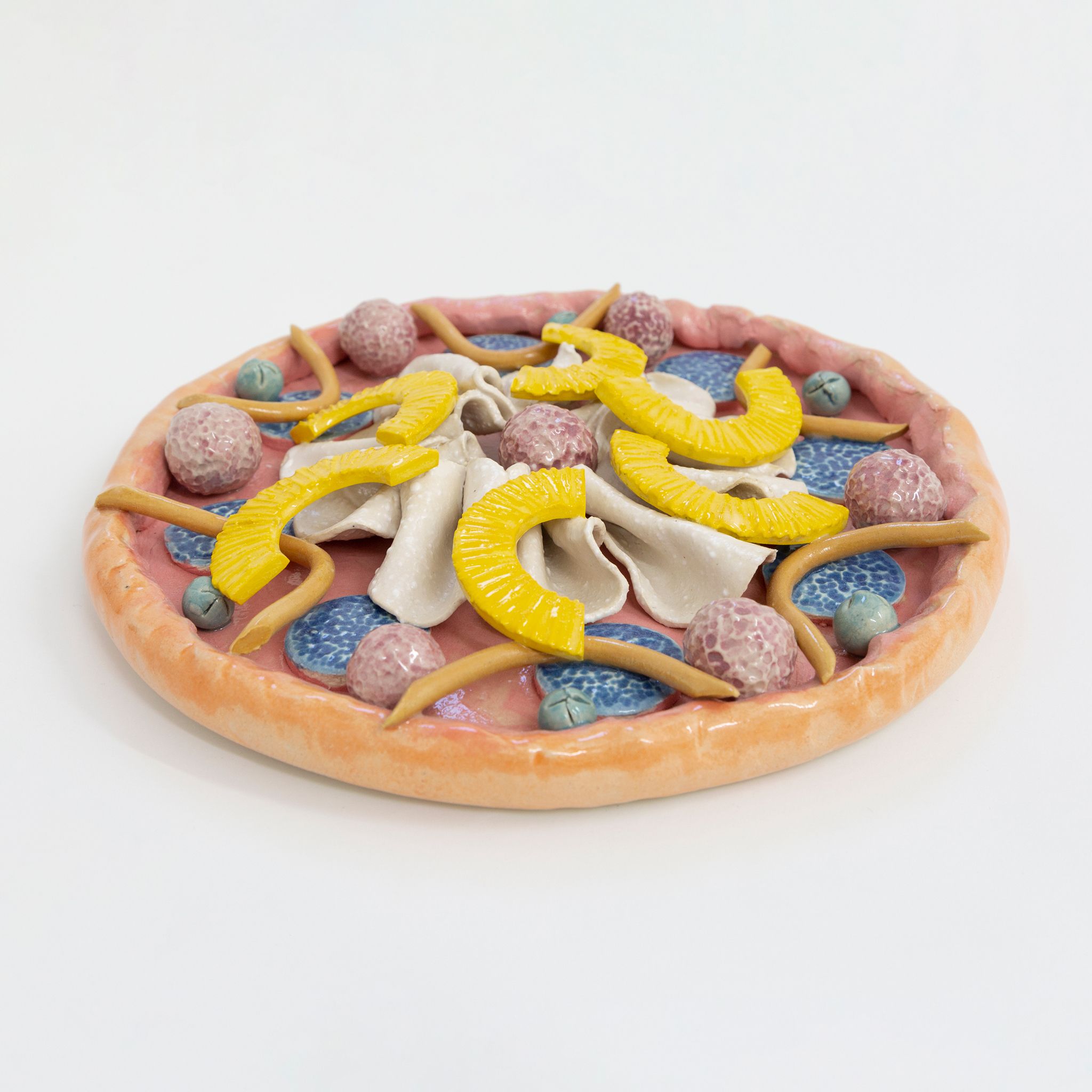 Yusuke Saito, OOPARTS (pizza) 18, 2023, Ceramic, 9.3 x 9.3 x 1.3 inches